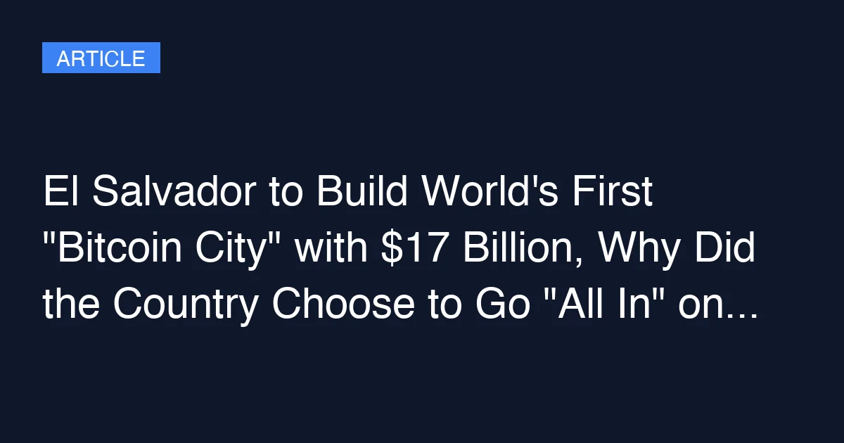 El Salvador to Build World's First "Bitcoin City" with $17 Billion, Why Did the Country Choose to Go "All In" on Bitcoin?
