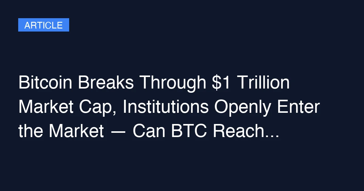 Bitcoin Breaks Through $1 Trillion Market Cap, Institutions Openly Enter the Market — Can BTC Reach $100,000?