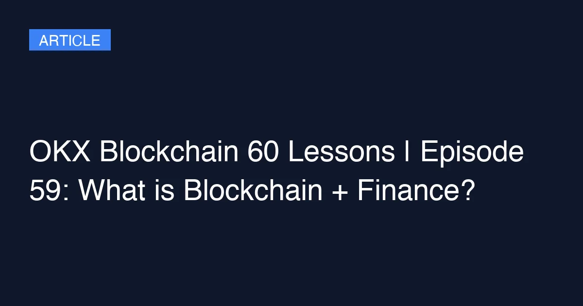 OKX Blockchain 60 Lessons | Episode 59: What is Blockchain + Finance?