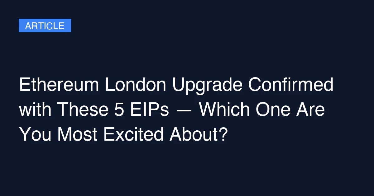 Ethereum London Upgrade Confirmed with These 5 EIPs — Which One Are You Most Excited About?
