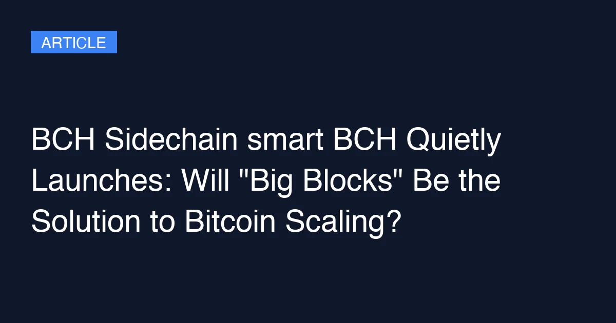 BCH Sidechain smart BCH Quietly Launches: Will "Big Blocks" Be the Solution to Bitcoin Scaling?