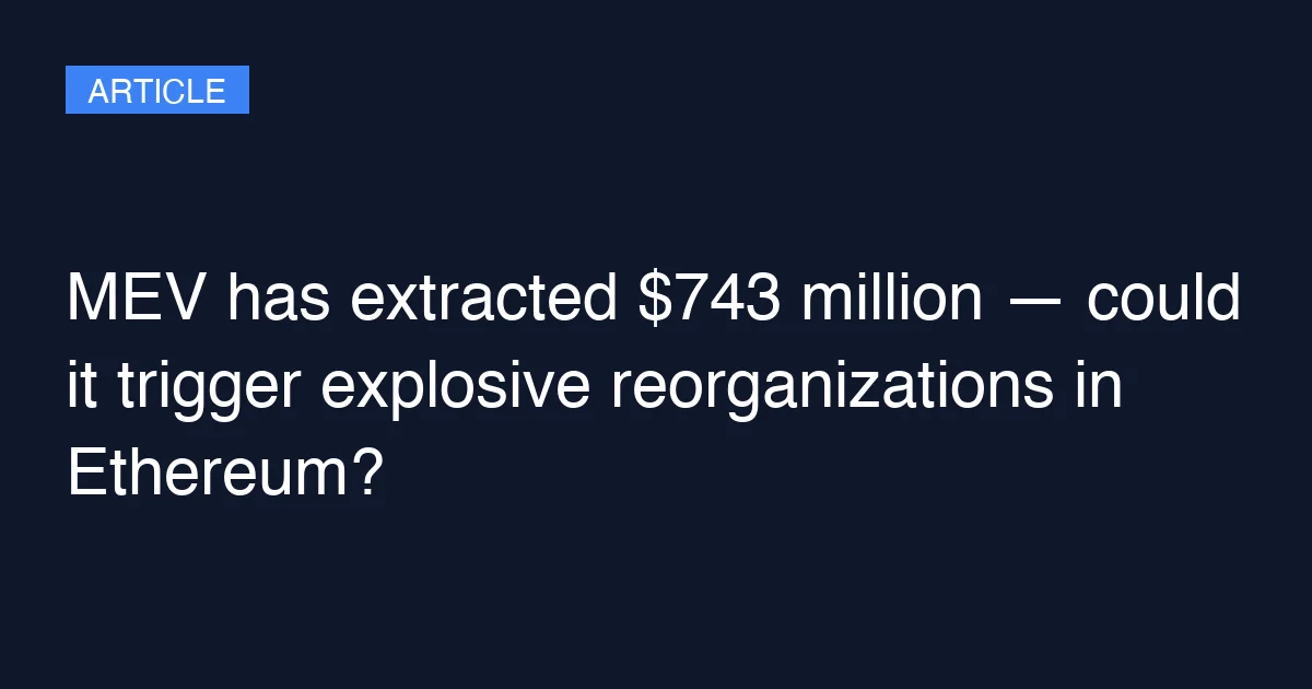MEV has extracted $743 million — could it trigger explosive reorganizations in Ethereum?