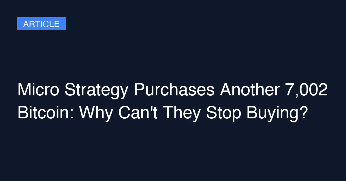 Micro Strategy Purchases Another 7,002 Bitcoin: Why Can't They Stop Buying?