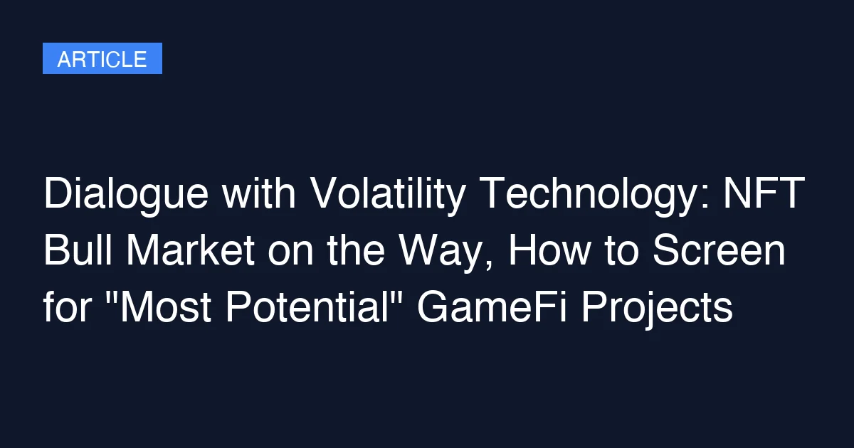 Dialogue with Volatility Technology: NFT Bull Market on the Way, How to Screen for "Most Potential" GameFi Projects